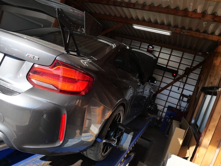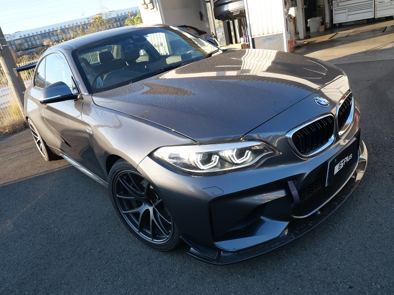F87M2でサーキット走行を楽しまれているお客様のアラゴスタ車高調タイプSの仕様変更、オーバーホールを