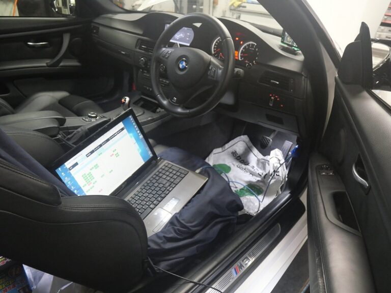 最後にBMW専用テスターを車両に接続してコンピューター診断を行いエラーチェック、消去、サービスインターバルリセットを行い