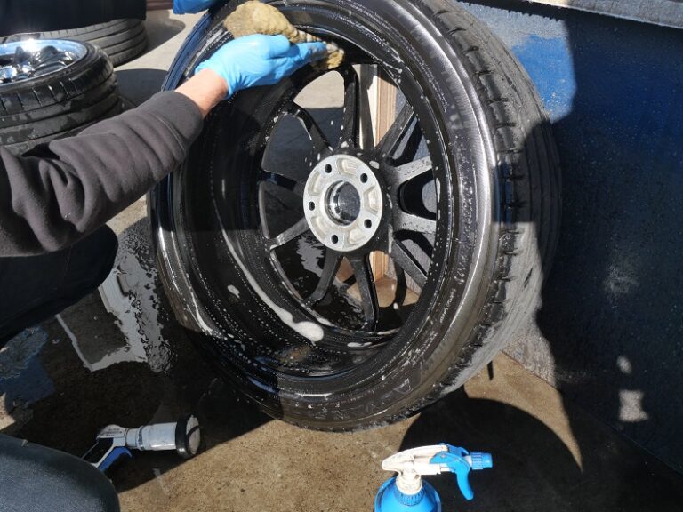 キャリパーシールからのフルード滲みの点検を行いハブ部分の錆取り、防錆処理を行いホイールは、裏も表も綺麗に洗います。