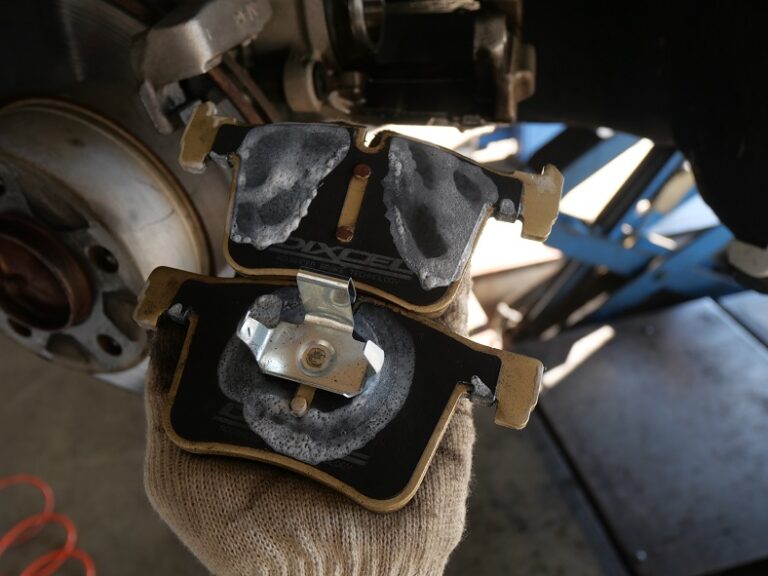 当店の車検整備では、リアブレーキローターを取り外してブレーキシューまわりの洗浄と可動部分のグリスアップを行い
