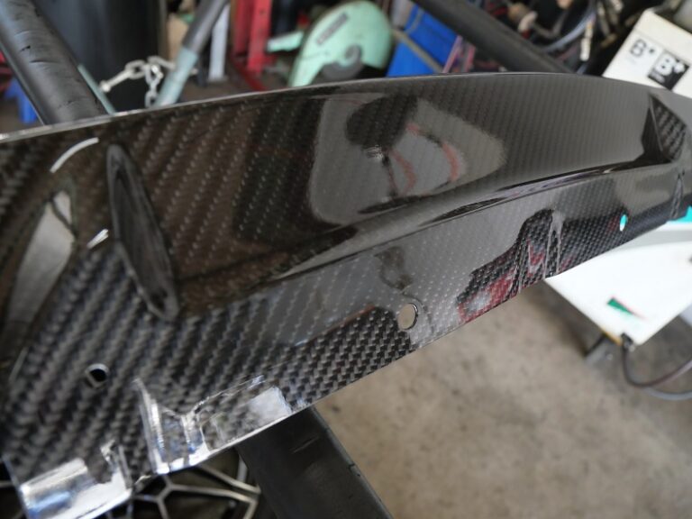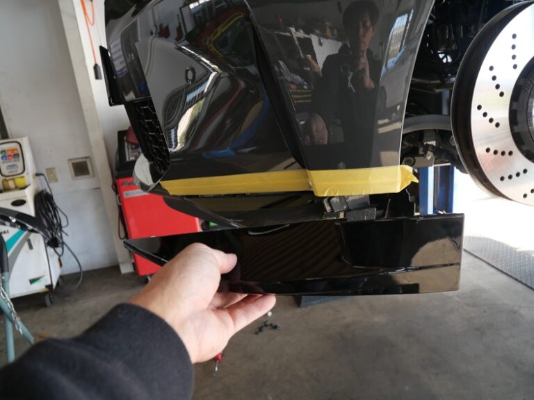 同時に3Dデザインのフロントリップスポイラー(カーボン)の取り付けを行いました。