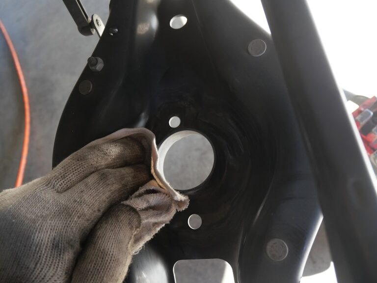は、ベアリングのグリスが滲み出ている状態でした。純正部品で再利用するパーツは、綺麗にしてから組み付けます。