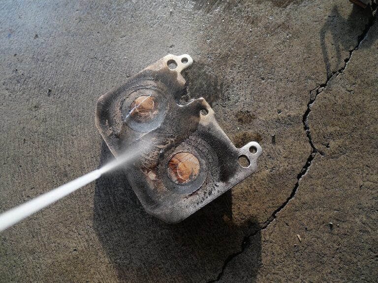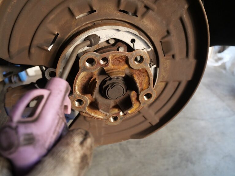 当店の車検整備では、リアブレーキローターを取り外してブレーキシューまわりの洗浄と可動部分のグリスアップを行い