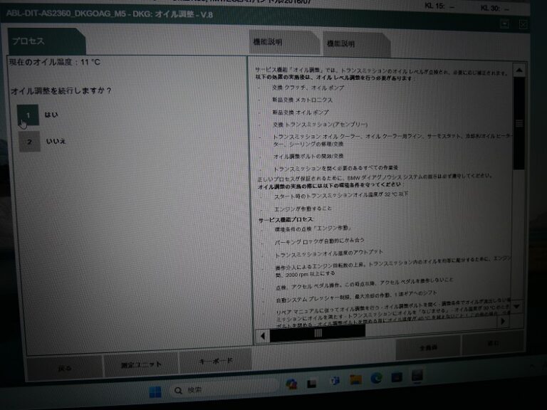 BMW専用テスター使用して温度管理をしながら調整していきます。