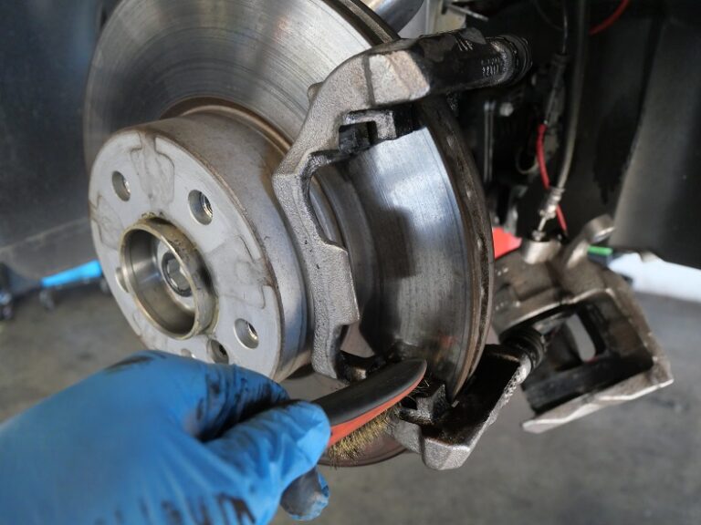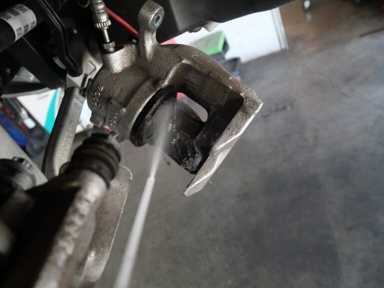 当店でのブレーキパッド交換作業の際には、キャリパーまわりの洗浄とキャリパーシールからのフルード滲み