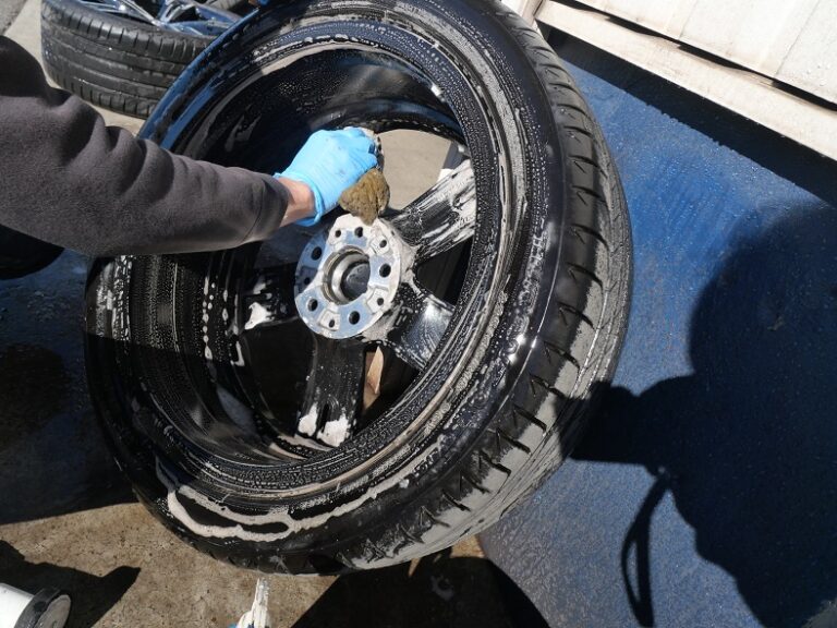 を点検してパッドグリスを付けてから組み付けしてハブ部分の錆取り防錆処理を行いホイールは、裏も表も