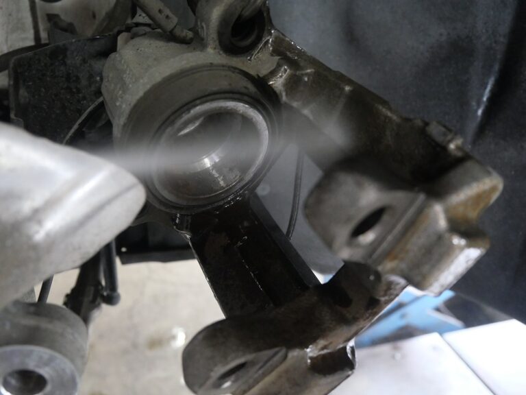 キャリパーシールからのフルード滲みの点検を行いキャリパーまわりの洗浄を行います