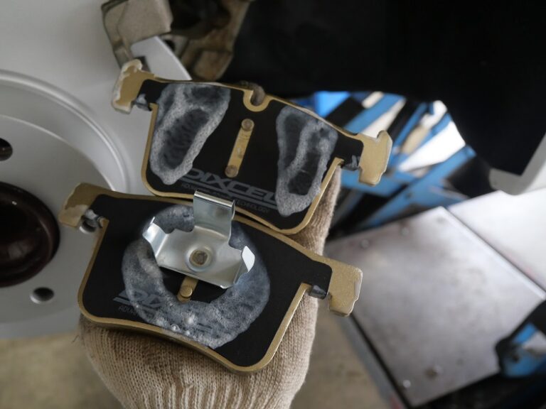 今回は、お客様のご希望でフロント側をディクセルPDローター、タイプMパッドにて交換を行いました。