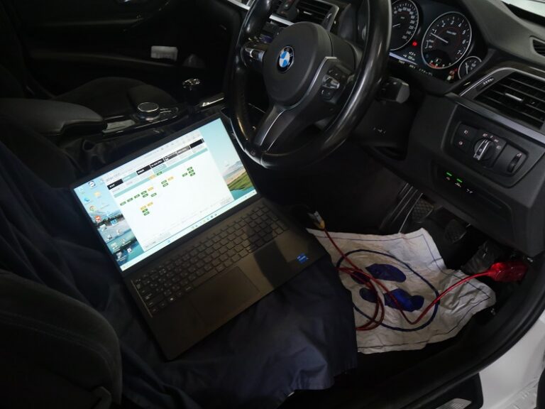 最後にBMW専用テスター使用してコンピューター診断を行いエラーチェック、消去、サービスインターバルリセットを