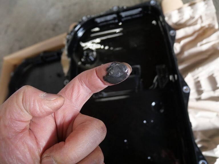 オイルパンごとの交換作業となります。オイルパン内の磁石には、お馴染みの鉄粉が・・・凄いです