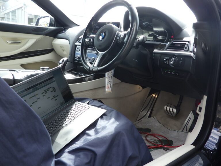 最後にBMW専用テスター使用してコンピューター診断を行いエラーチェック、消去、サービスインターバルリセットを