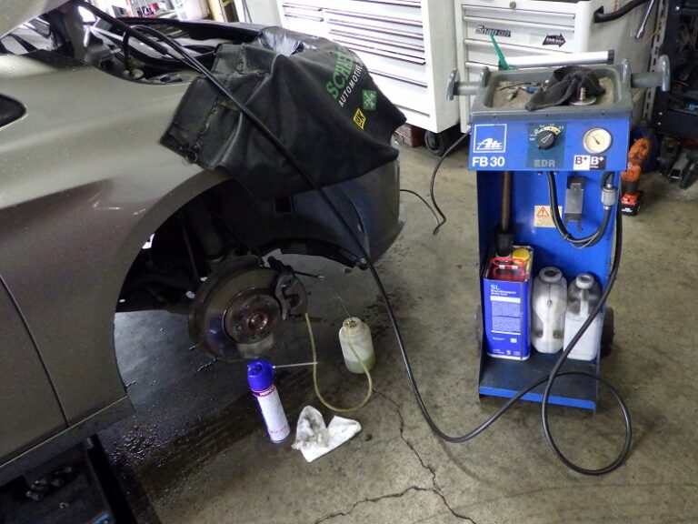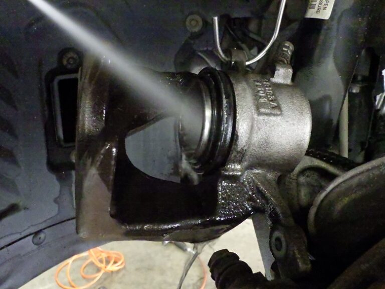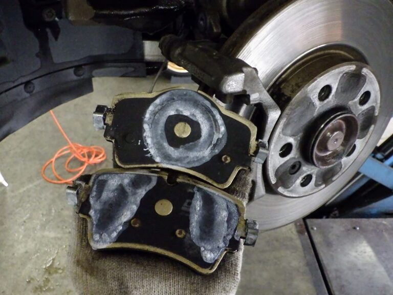 当店の車検整備では、ブレーキパッドは、前後とも外して表面の洗浄とグリスアップを行いキャリパーまわりの洗浄をして