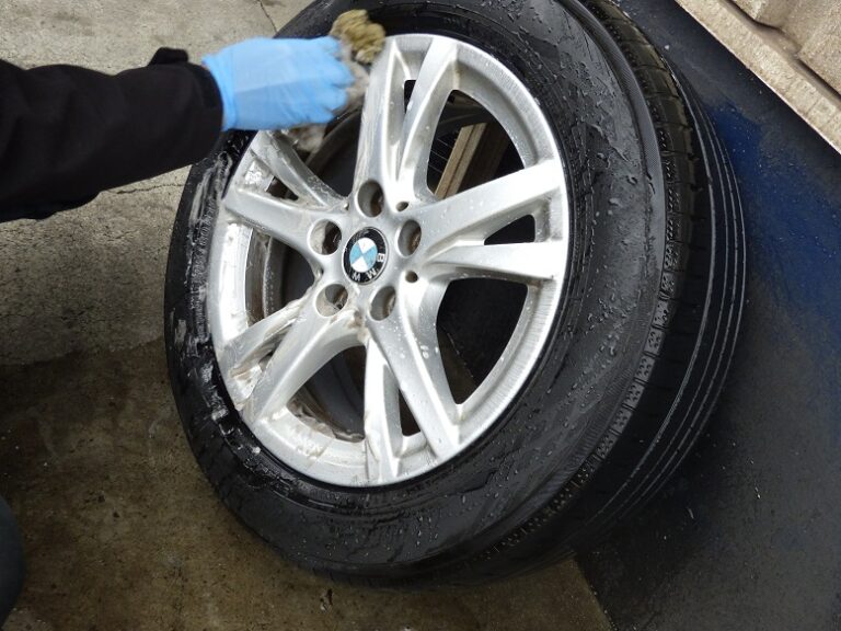 キャリパーシールからのフルード滲みの点検を行いハブ部分の錆取り、防錆処理を行いホイールは、裏も表も綺麗に洗います。