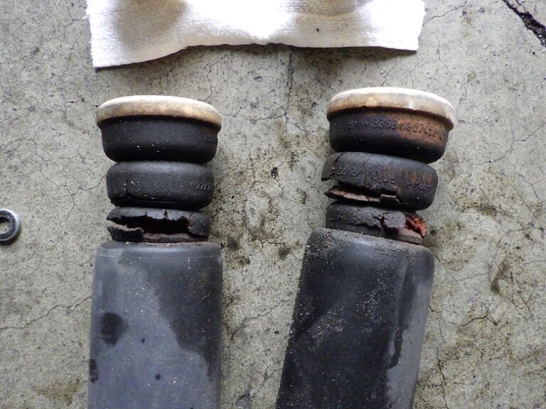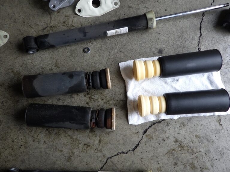 リアのショックのバンプラバーがボロボロでして純正部品の新品に交換を行いました。