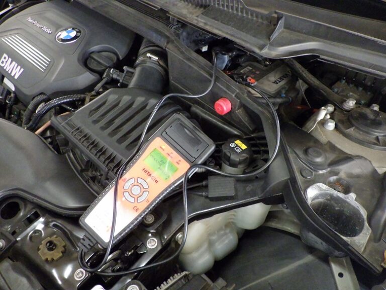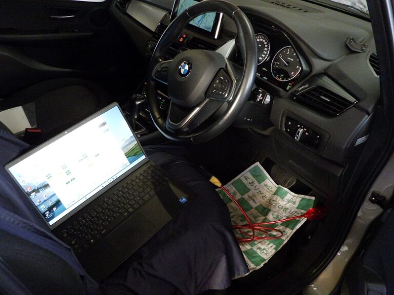 車検キャンペーンご利用にてアライメント調整を行いましてバッテリー診断を行いBMW専用テスター使用して