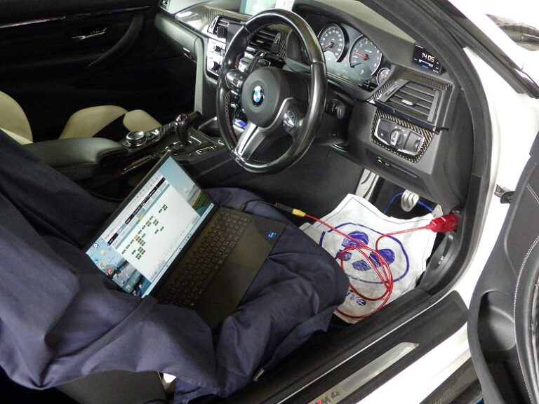 最後にBMW専用テスター使用してコンピューター診断を行いエラーチェック、消去、サービスインターバルリセットを