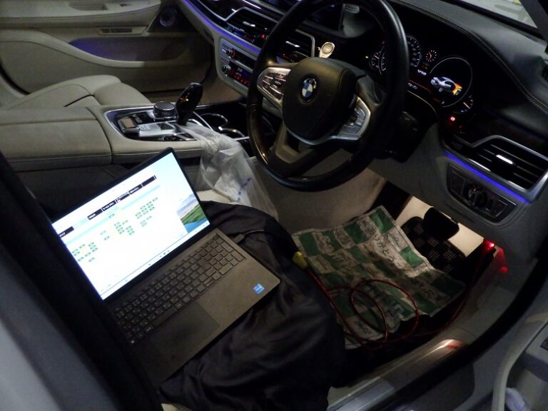 作業後は、BMW専用テスター使用してブレーキ警告灯の消去を行いました。