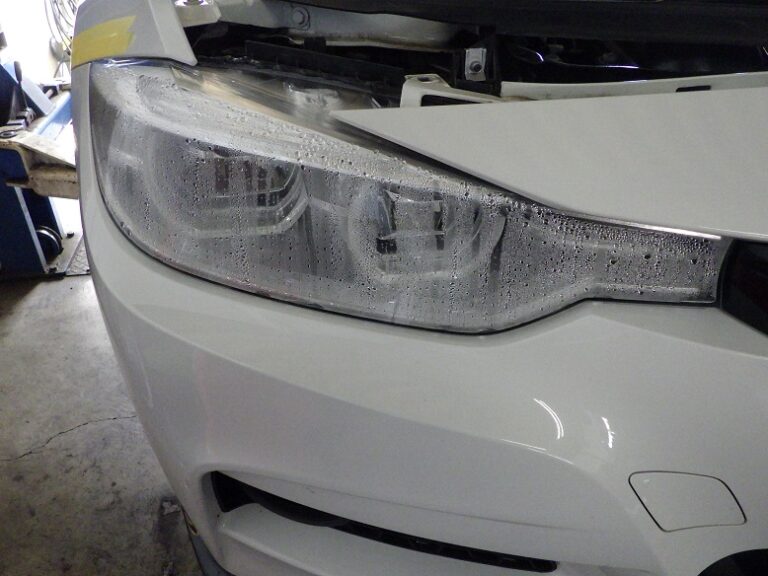F30後期型のお客様のヘッドライト片側の交換を行いました。ヘッドライトの中に水滴がたまり