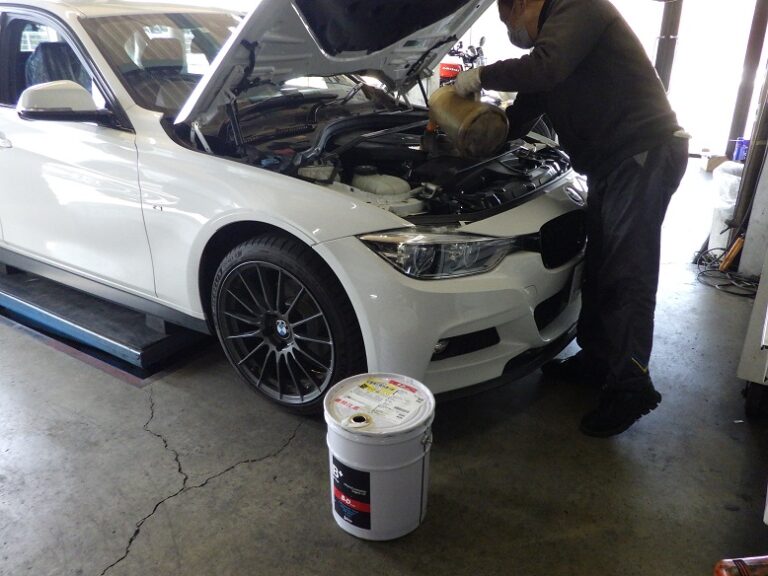 オイル交換は、いつもご愛用頂いておりますビープラスオリジナルルブロス製オイルS-D5W-40にて
