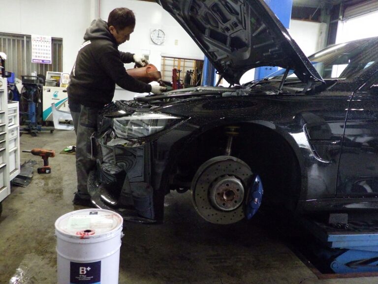 キャリパーシールからのフルード滲みの点検を行いキャリパーまわりの洗浄を行います
