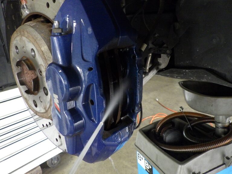 キャリパーシールからのフルード滲みの点検を行いキャリパーまわりの洗浄を行います