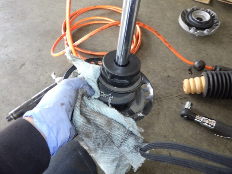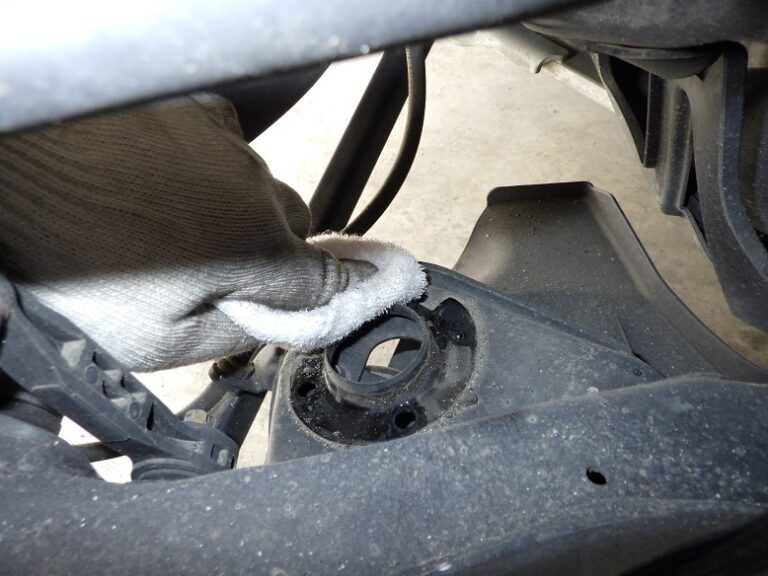 リアのスプリング取り付け部のアームのところには、砂利が溜まるので全て除去してからダウンサスを