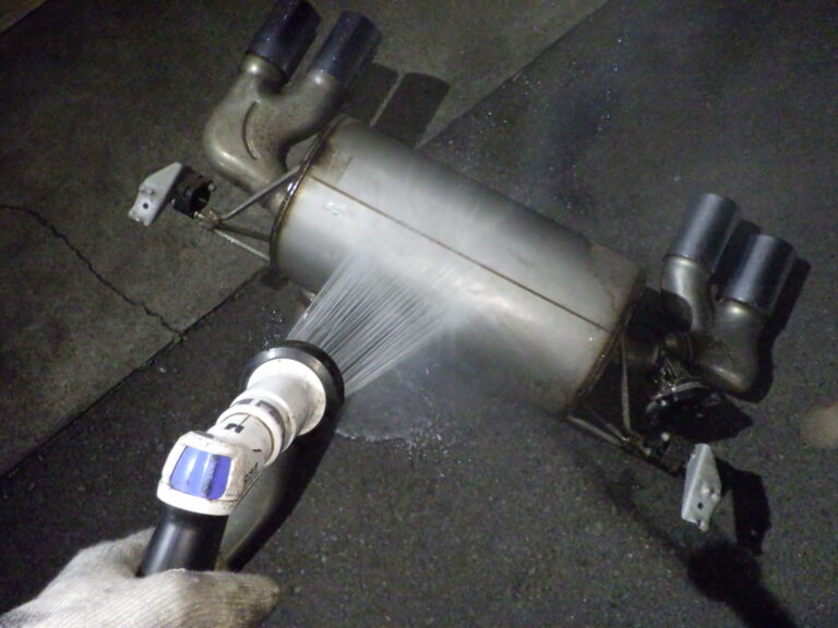 マフラー外した際には、マフラーの裏側まで綺麗に洗ってから取り付けしております。漏れたデフオイルの汚れも
