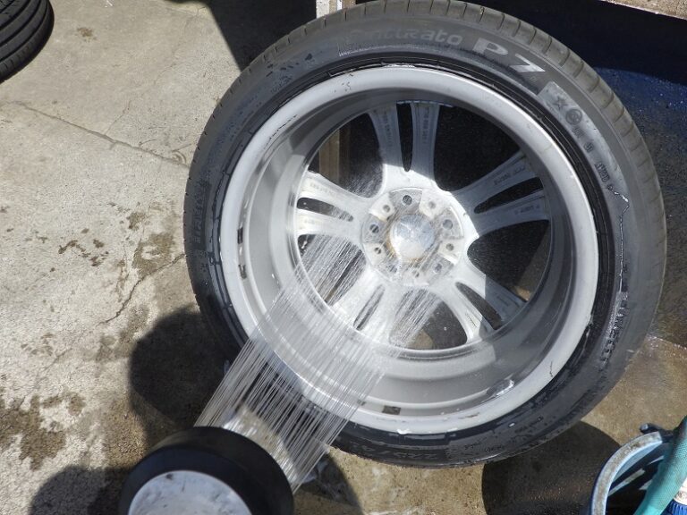 ハブ部分の錆取り防錆処理を行いホイールは、裏も表も洗います。