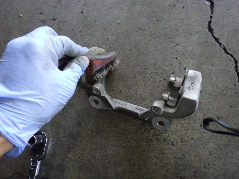 フルード滲みを点検してパッドは、グリスアップを行い取り付けします。ブレーキローター交換の際には、サイドブレーキが