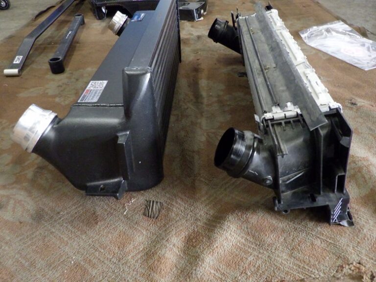 インタークーラーの形状を比べてみるとワグナーインタークーラーが純正品に比べて大型なのが分かります