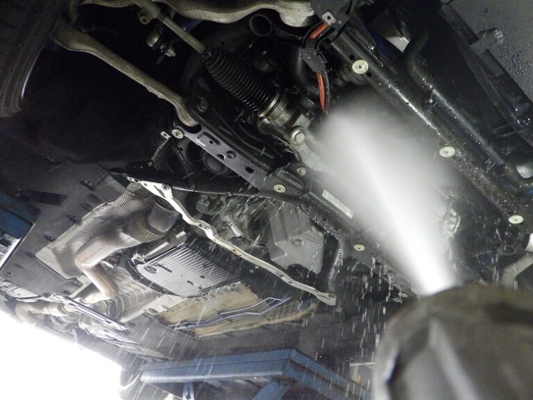 部品交換後は、漏れたオイルの汚れを高圧洗浄機で綺麗に洗浄して試走を行い再度点検をして作業は、