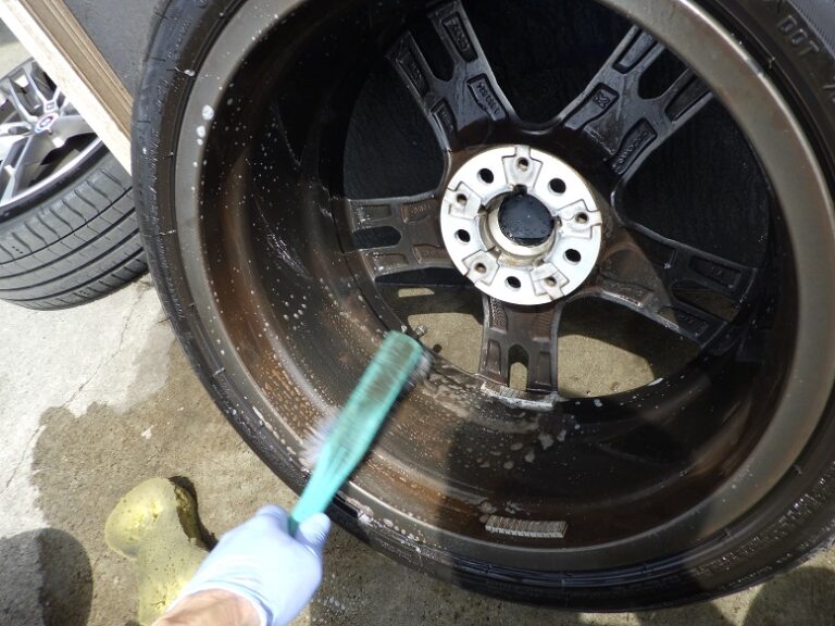 フルード滲みの点検を行いハブ部分の錆取り、防錆処理を行いホイールは、裏も表も綺麗に洗います