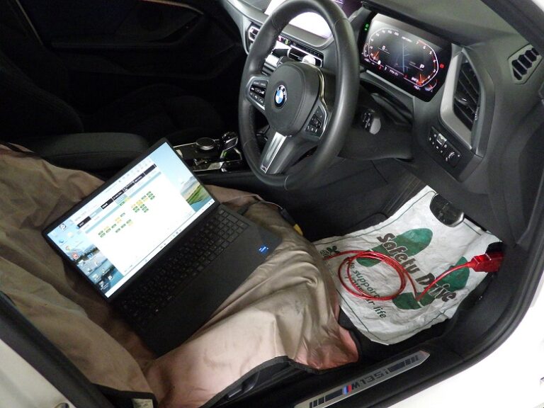 最後にBMW専用テスターにてコンピューター診断を行いエラーチェック、消去、サービスインターバルリセットを行い作業は、