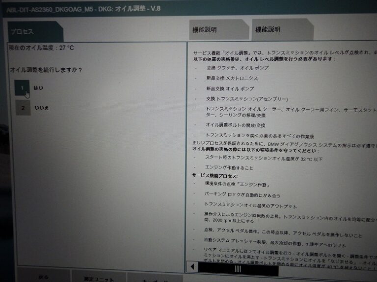 フルードの油量調整は、シビアな作業でして外気温度と油温の関係を見ながらBMW専用テスター使用して