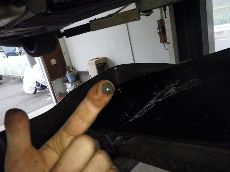 オイルパンごとの交換で作業します。オイルパン内の磁石には、汚れた鉄粉がたくさん付いていました・・・