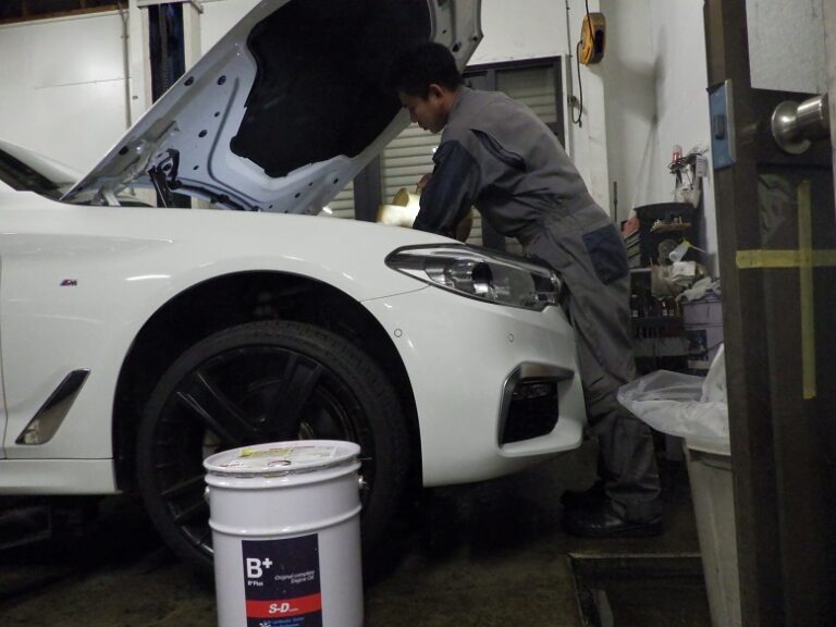 車検キャンペーンご利用にてオイル交換をビープラスオリジナルルブロス製オイルS-D5W-40にて