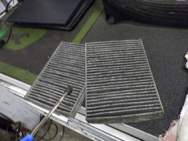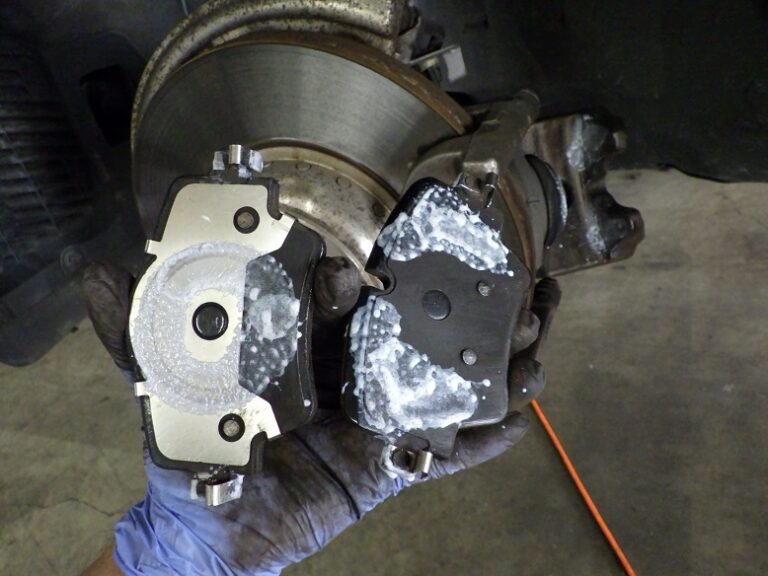 当店の車検整備では、ブレーキパッドは、前後とも取り外して表面の洗浄とグリスアップを行いブレーキキャリパーまわりの洗浄と