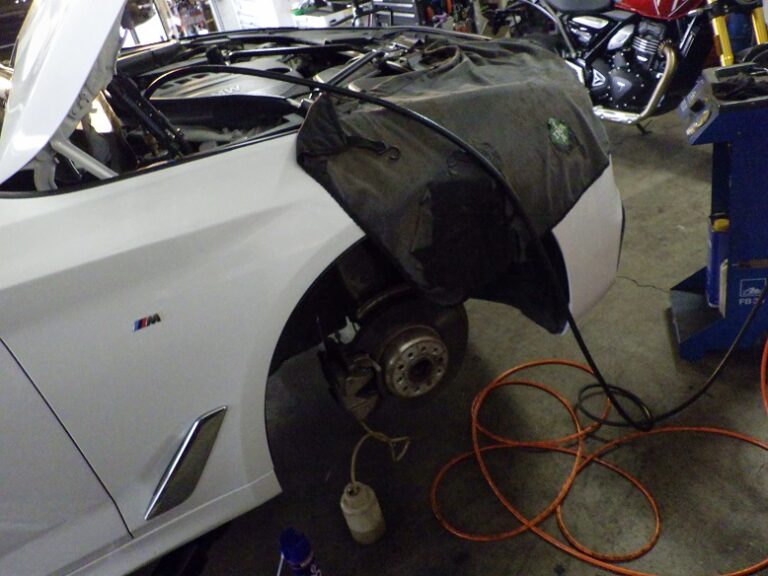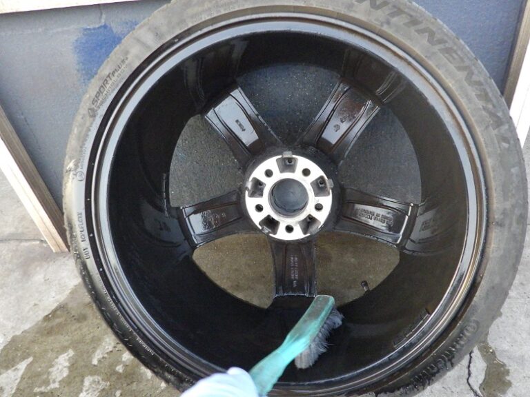 キャリパーシールからのフルード滲みを点検してハブ部分の錆取り防錆処理を行いホイールは、裏も表も洗います。