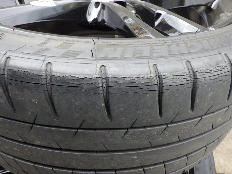 純正装着のタイヤが劣化でヒビだらけでした・・・しかもヒビが深く入っていて危険な状態です