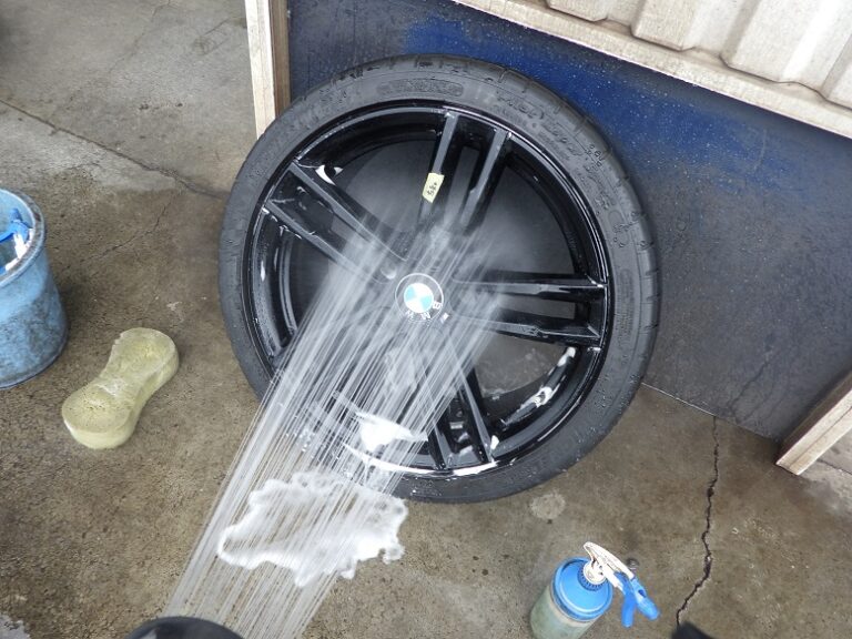 真っ直ぐ綺麗にウェイトは、取り付けします。またホイールの裏も表も綺麗に洗います。
