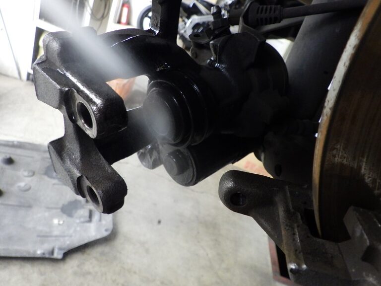 F48X1のお客様の車検整備を行いました。当店の車検整備においては、ブレーキキャリパーまわりの洗浄をして