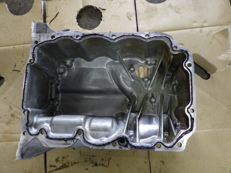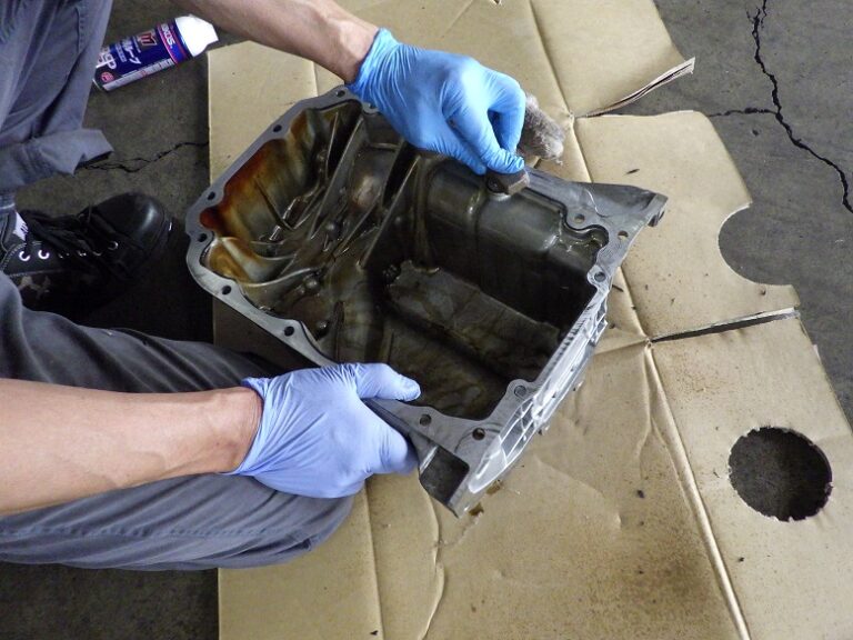 オイルパンの継ぎ目からエンジンオイルが漏れていたのでオイルパンを取り外して液体パッキンの塗り直しの