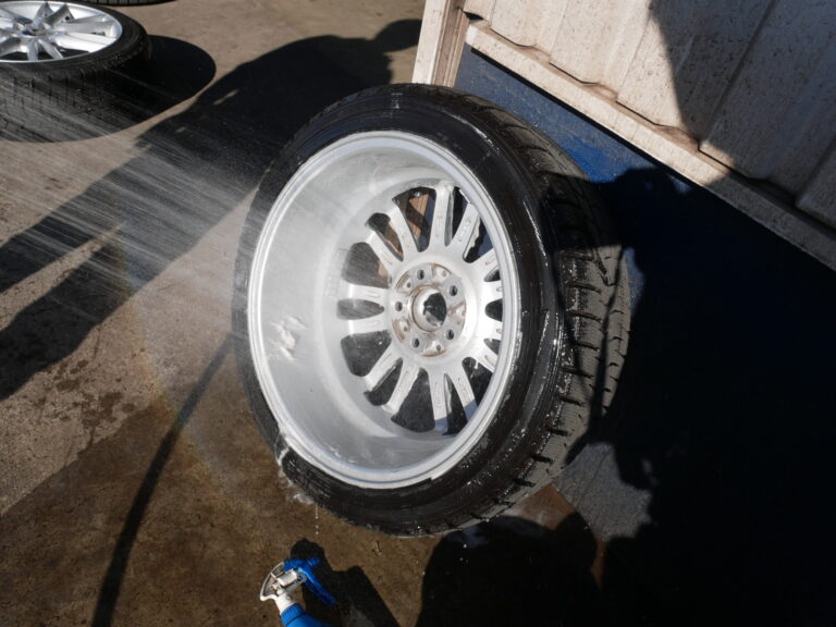 ハブ部分の錆取り、防錆処理を行いホイールは、裏も表も洗います。