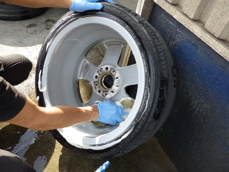 キャリパーシールからのフルード滲みを点検してハブ部分の錆取り防錆処理を行いホイールは、裏も表も洗います。