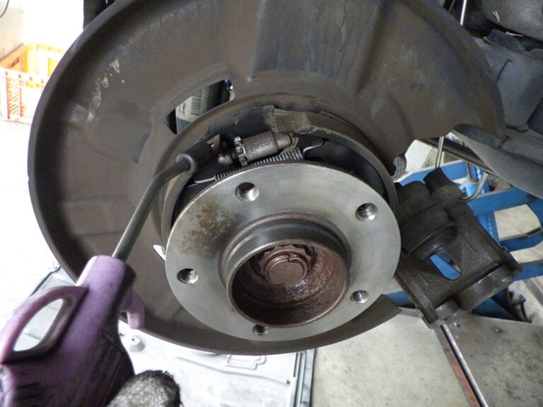 当店の車検整備では、リアブレーキローターは、取り外してブレーキシューまわりの洗浄と可動部分のグリスアップを行い