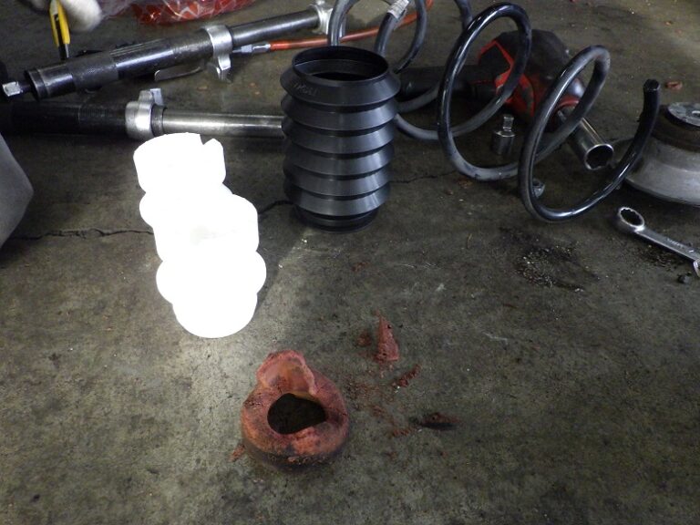 E系車両で多いショックのバンプラバーが劣化でボロボロに・・・このままでしたら確実にショックの