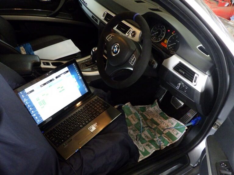 車検キャンペーンご利用にてアライメント調整を行いバッテリー診断を行いBMW専用テスター使用して