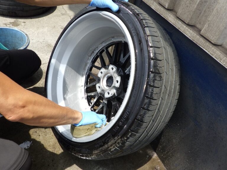 キャリパーシールからのフルード滲みを点検してハブ部分の錆取り防錆処理を行いホイールは、裏も表も洗います。