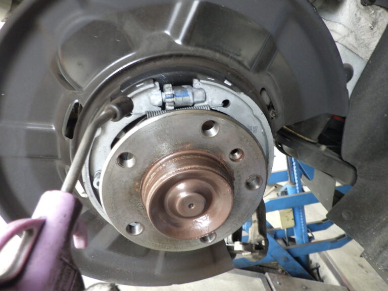 当店の車検整備では、リアブレーキローターは、取り外してブレーキシューまわりの洗浄と可動部分のグリスアップを行い