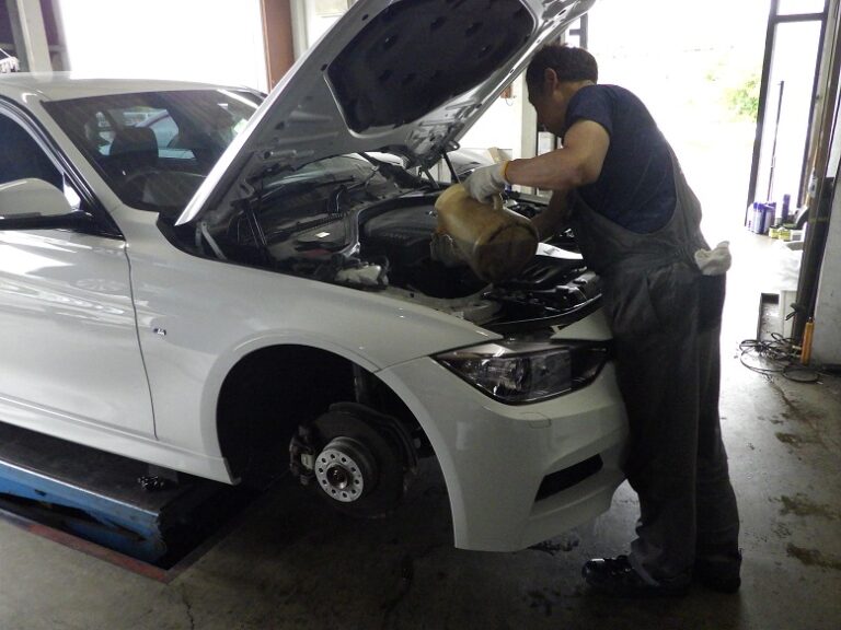 車検キャンペーンご利用にてオイル交換をビープラスオリジナルルブロス製オイルS-TB0W-40にて作業をして